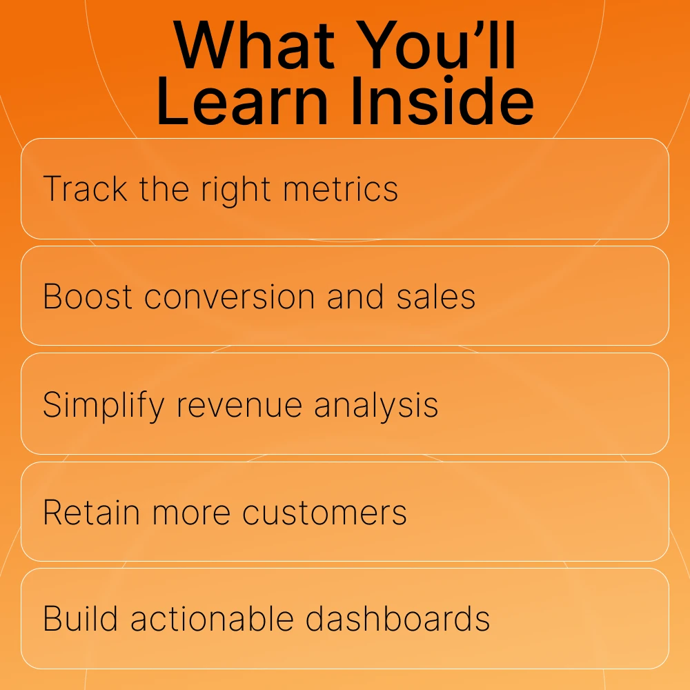 With easy-to-understand explanations, practical tips, and real-life case studies, this eBook helps you gain the confidence to make data-driven decisions that will take your business to the next level. Learn the difference between vanity metrics and decision-making metrics, how to understand traffic, conversion, revenue, and retention metrics, and how to create a dashboard tailored to your goals.