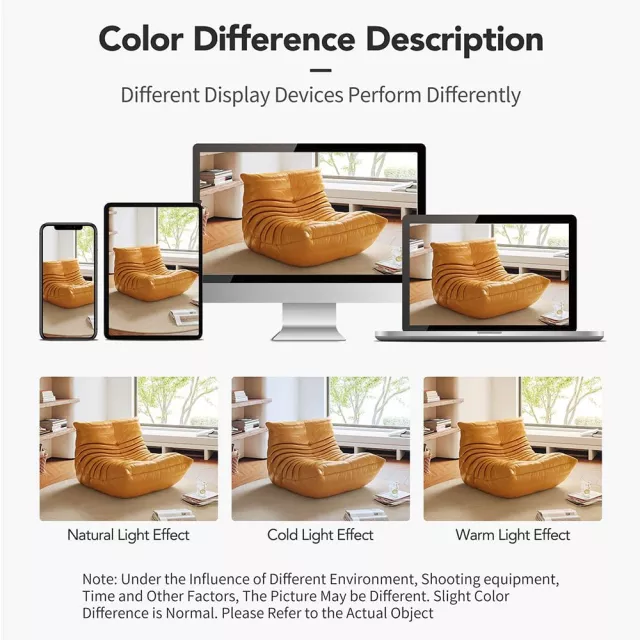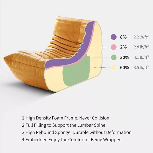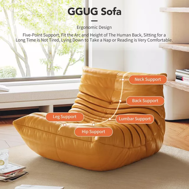 Crafted without wood or metal, this floor sofa uses a supportive frame made entirely from four densities of high-quality polyether foam, delivering a plush seating experience that conforms to your body while staying durable over time. The synthetic leather upholstery and soft fabric texture are inspired by classic mid-century design, offering a modern look that’s both functional and fashionable. Lightweight yet sturdy, this accent chair is easy to move and perfectly suited for any corner of your home or professional setting.