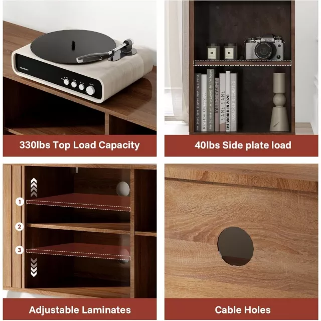 • Adjustable Shelves: Four central open compartments for easy access to media devices and accessories.