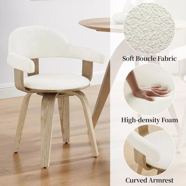 Mid-Century Modern Swivel Desk Chair, Boucle Upholstered, No Wheels