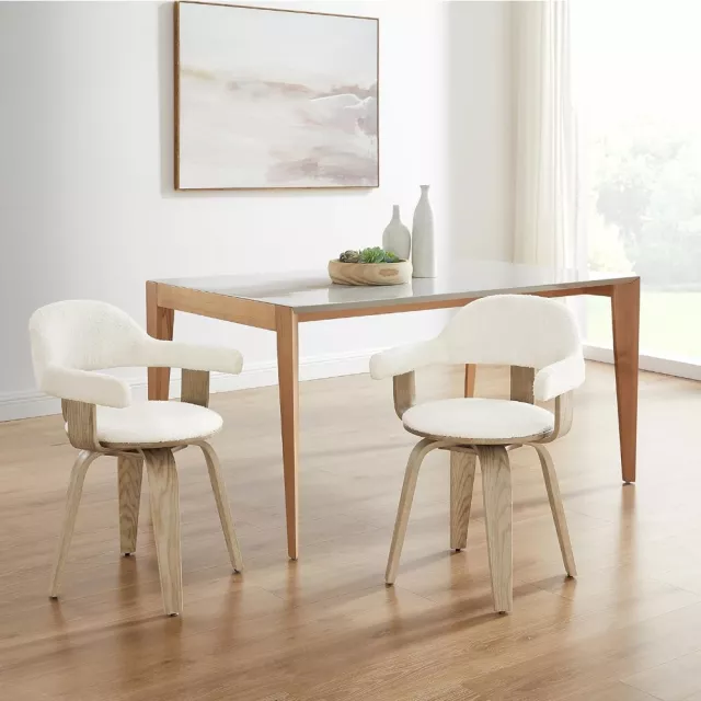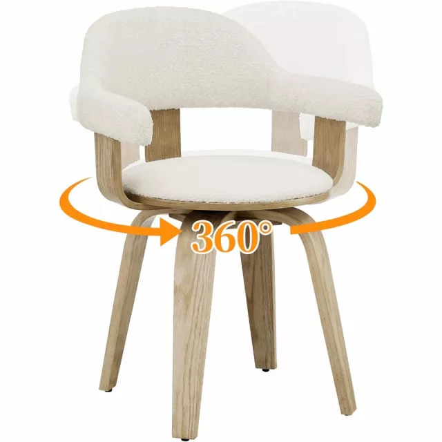 This no-wheel swivel desk chair is best used in environments where comfort and aesthetics are equally important—home offices, cozy reading nooks, dining areas, or as an accent chair in the living room. The open back design offers breathability, while the X-shape base provides visual interest and added stability. The elegant blend of boucle fabric and bentwood craftsmanship gives this chair a unique character that will draw compliments for years to come.