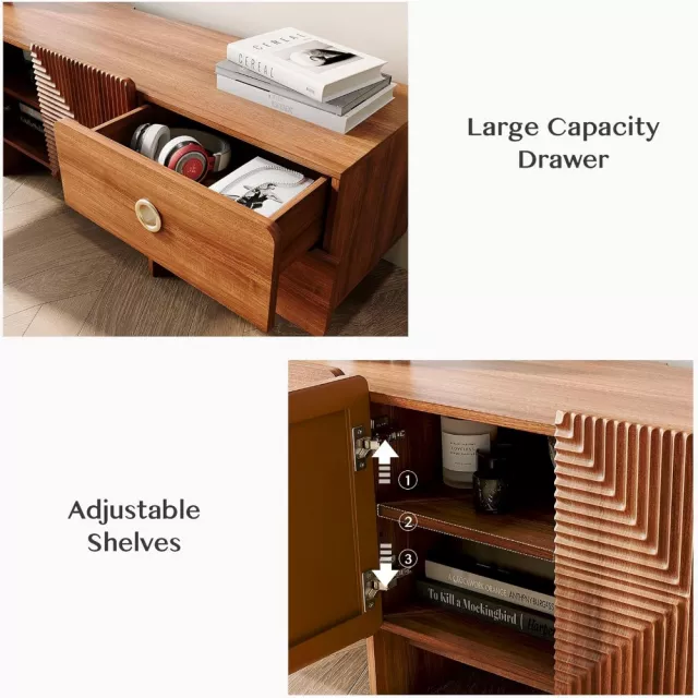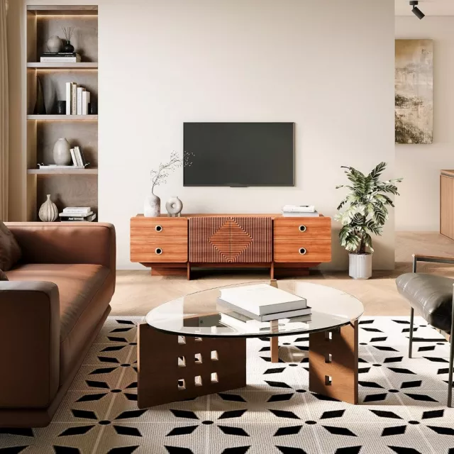This TV stand is more than just furniture—it’s a design statement. The fusion of Mid-Century Modern simplicity with Bohemian flair makes it a perfect match for a wide range of interior styles. Use it to anchor your entertainment area, display your favorite decor pieces, or neatly organize your media essentials.