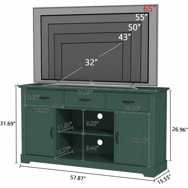 Mid Century TV Stand for 65 Inch TV with Drawers & Shelves