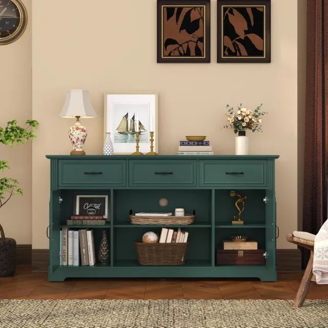 • 3 open shelves perfect for consoles, decor, or books