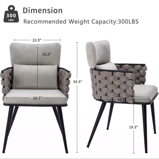 Crafted with a durable metal frame and powder-coated steel legs, these chairs are built to last and support up to 300 lbs each. The plush seat cushion, wrapped in skin-friendly velvet, offers a cozy, supportive experience that makes every meal more enjoyable. The gently curved silhouette hugs your body, ensuring comfort even during long dinners and conversations.