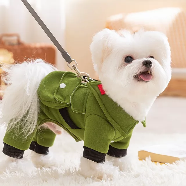 Dress your furry friend in this adorable military-inspired dog jumpsuit that combines warmth, comfort, and a fashionable edge. Designed with soft polyester fiber, this four-leg pullover hoodie is perfect for keeping your pet cozy during chilly autumn and winter walks. Its unique uniform-style look turns heads while giving your dog a snug, protective fit.