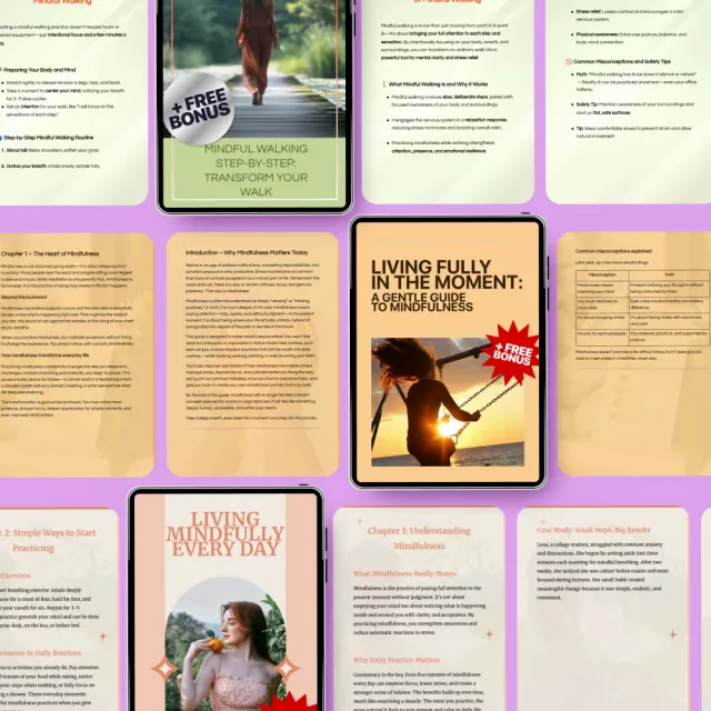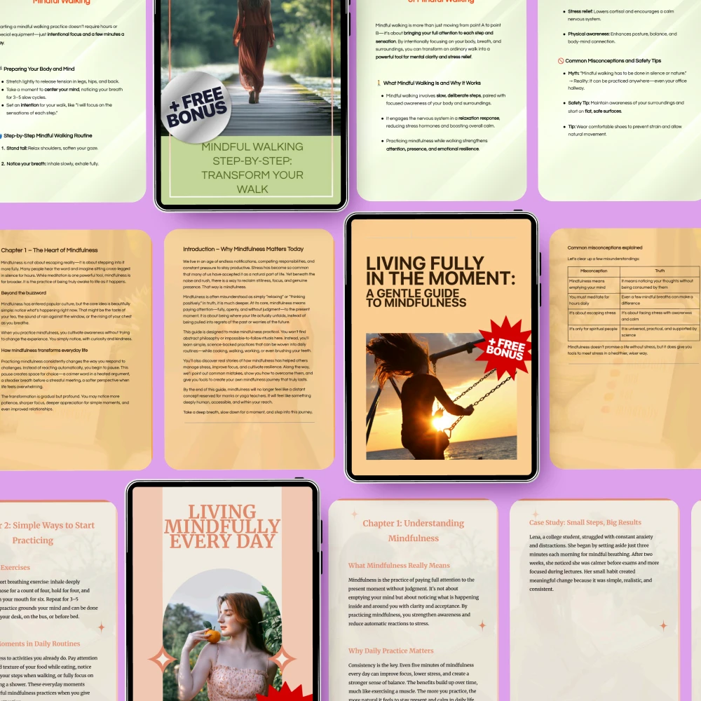 Unlike other mindfulness resources, the Mindful Living Step-by-Step bundle goes beyond just theory. It provides tangible, step-by-step guidance that you can easily incorporate into your everyday routine. Each component is crafted to offer practical exercises and tools, so you can see real, lasting changes in your life. If you’re serious about how to practice mindfulness, this bundle is the perfect companion to your journey.