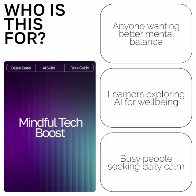 This guide is for anyone who wants to blend mindfulness with technology — from busy thinkers and self-improvement seekers to anyone curious about using AI in a healthy, balanced way. If you value emotional awareness and want tools that help you feel grounded, Mindful Tech Boost was made for you.