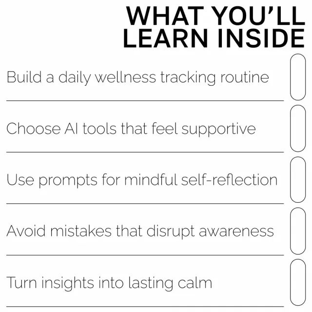 • Chapter Four: Next Steps for Building a Consistent Wellness Routine – Create simple, lasting habits supported by gentle AI reminders and reflection prompts.