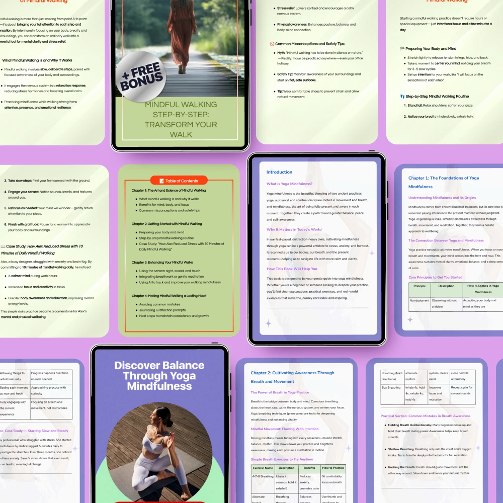 🌸 This bundle is a breath of fresh air! The walking guide has made my morning strolls so much more meaningful and the yoga & meditation guides are just what I needed to find inner peace. Highly recommended for anyone trying to lead a mindful life.