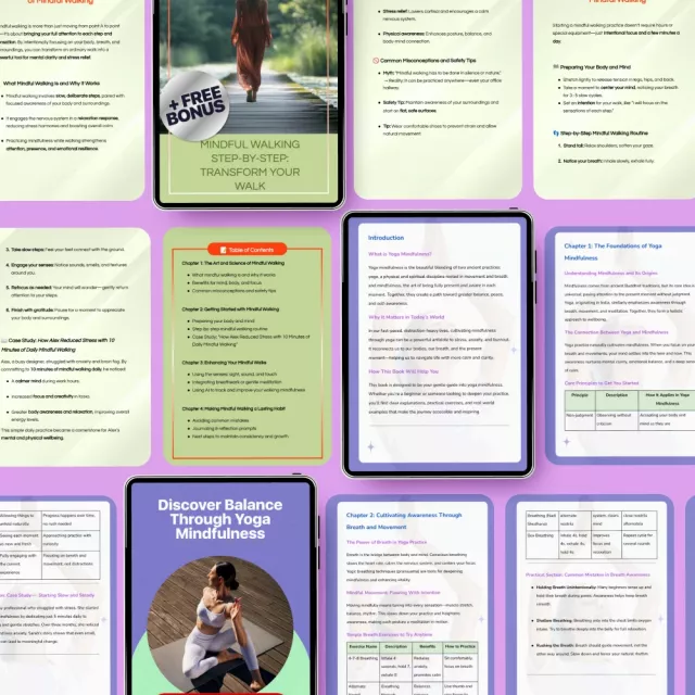 I must admit, initially I was skeptical about buying yet another self-help product online. But boy am I glad I took a chance on these mindfulness guides! Each one offers unique insights and practical tips that have transformed mundane activities like walking into opportunities for deep introspection. The Yoga exercises are perfect too – they’re gentle enough for beginners yet challenging enough to keep things interesting over time (I’ve noticed significant improvements in both body strength and mental clarity). As for Meditation – wow! Never have I found a guide that breaks down the process so simply yet comprehensively. It’s been an absolute revelation and has helped me achieve a level of inner peace I never thought possible. Kudos to the minds behind this bundle, it's truly enriching!