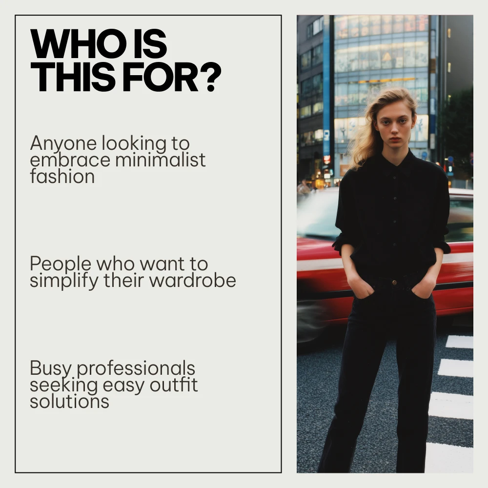 This bundle is perfect for fashion enthusiasts, busy professionals, or anyone looking to simplify their closet without sacrificing style. Unlike other digital resources, the Minimal Trends Toolkit for Outfit Planning gives you everything you need to not only embrace minimalism but also stay on top of what minimal outfits are trending now. You’ll find practical tips, actionable steps, and expert insights in one easy-to-use package.