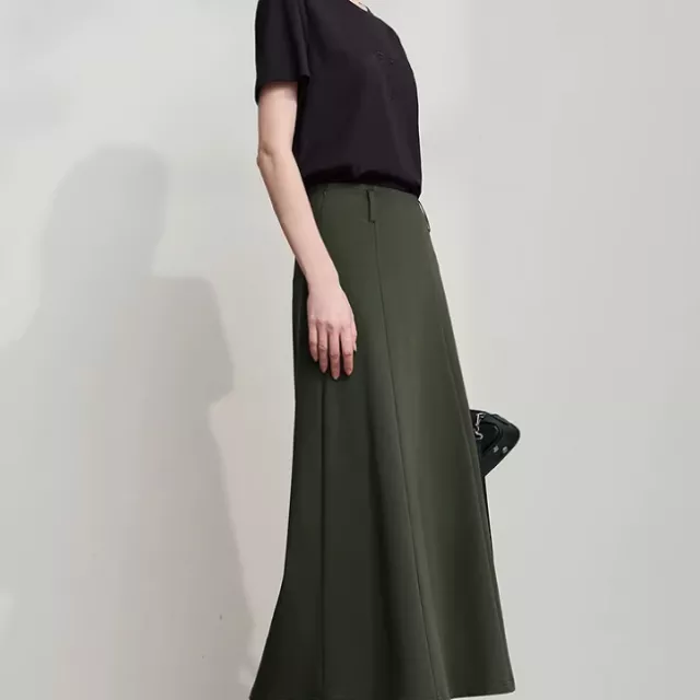 Meet the skirt that makes getting dressed easy. This minimalist A-line knitted midi skirt is designed for modern women who want comfort without sacrificing style. Made from a soft cotton-blend fabric with a touch of stretch, it moves with your body while keeping its elegant structure. The clean, solid color and loose silhouette make it perfect for both office wear and relaxed vacation looks.