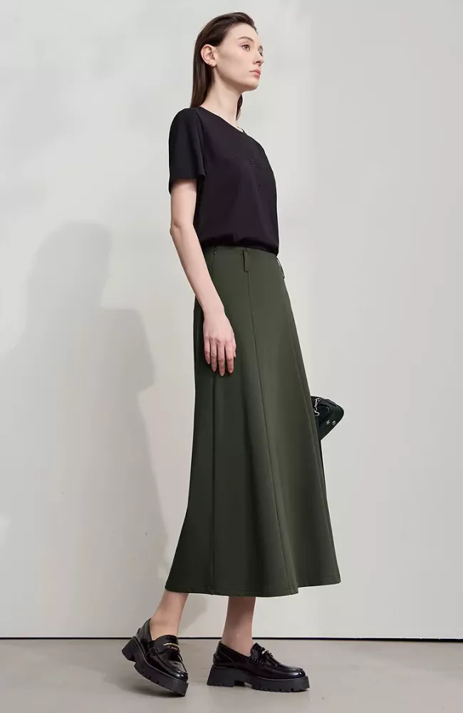 What sets this skirt apart is its balanced design. It combines a soft knitted texture with a flattering A-line silhouette and natural waistline. The result? A timeless piece that suits many body types and occasions. The mid-calf length offers just the right amount of coverage for cooler  winter days while still feeling light and breathable.