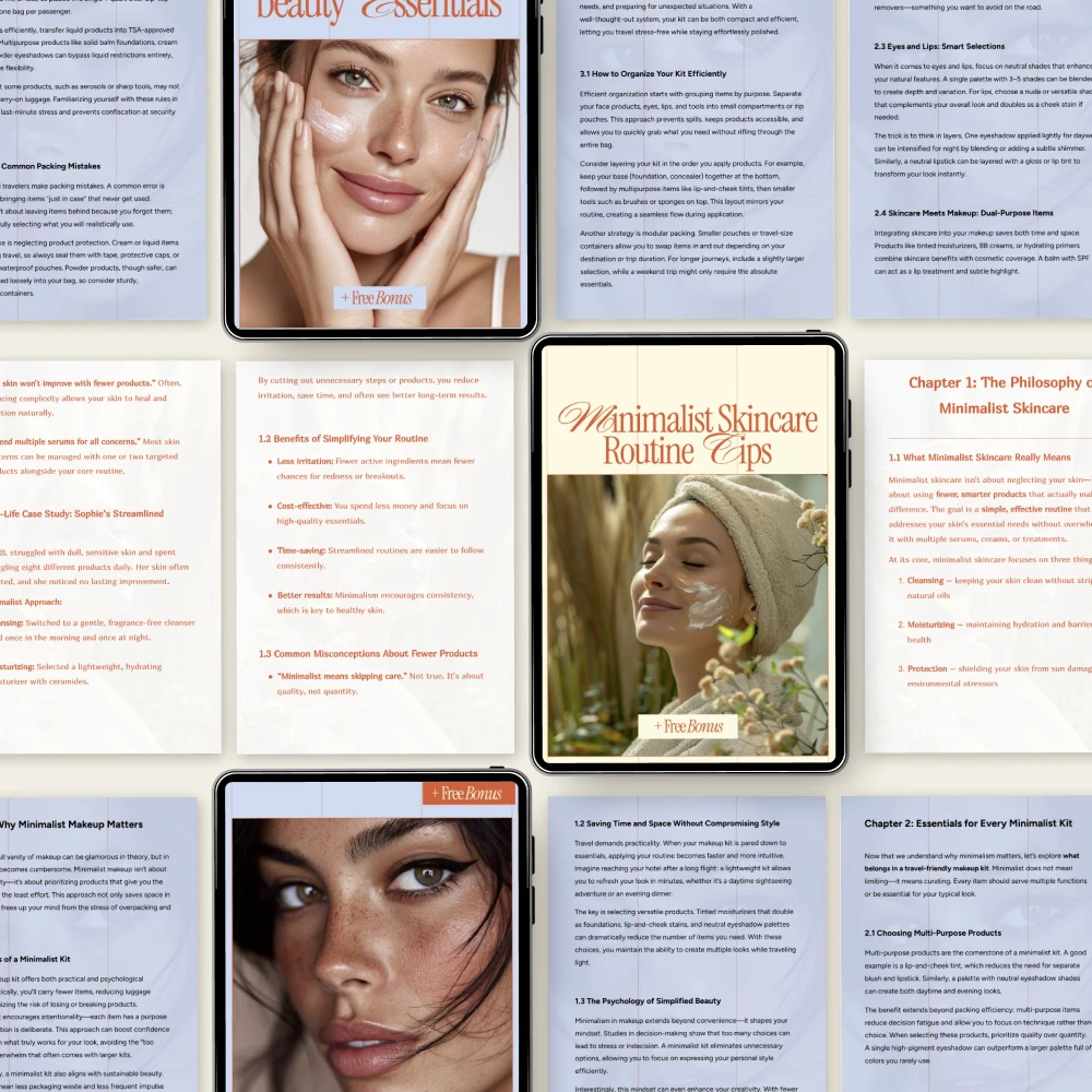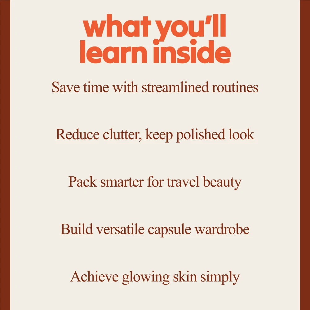 This bundle is perfect for anyone drawn to minimalist beauty trends—busy professionals, travelers, creatives, or anyone craving a simpler, more intentional lifestyle. If you love clean aesthetics, practical checklists, and beauty routines that actually fit into your day, this is for you.