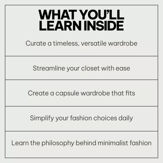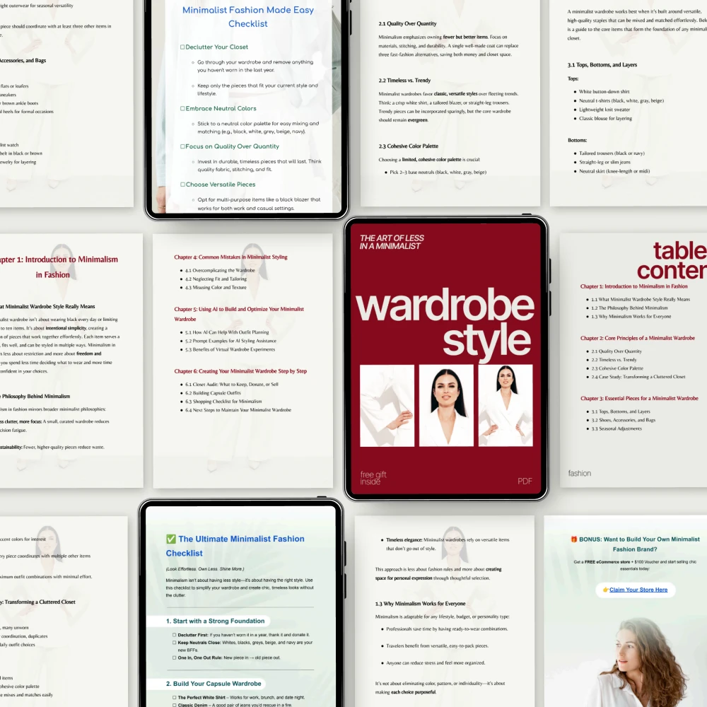 • The Art of Less in a Minimalist Wardrobe Style: A thought-provoking eBook that goes beyond fashion and delves into the art of living with less, all while looking effortlessly chic.