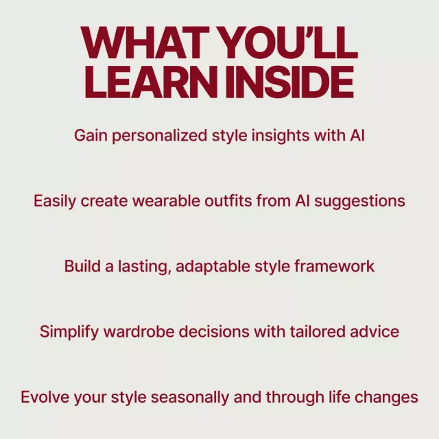 • Build a Lasting Style System: Learn how to create a style framework that evolves with your lifestyle and preferences, ensuring your wardrobe stays fresh and relevant.