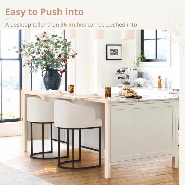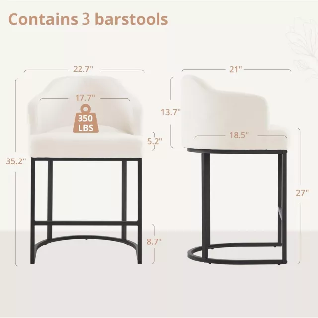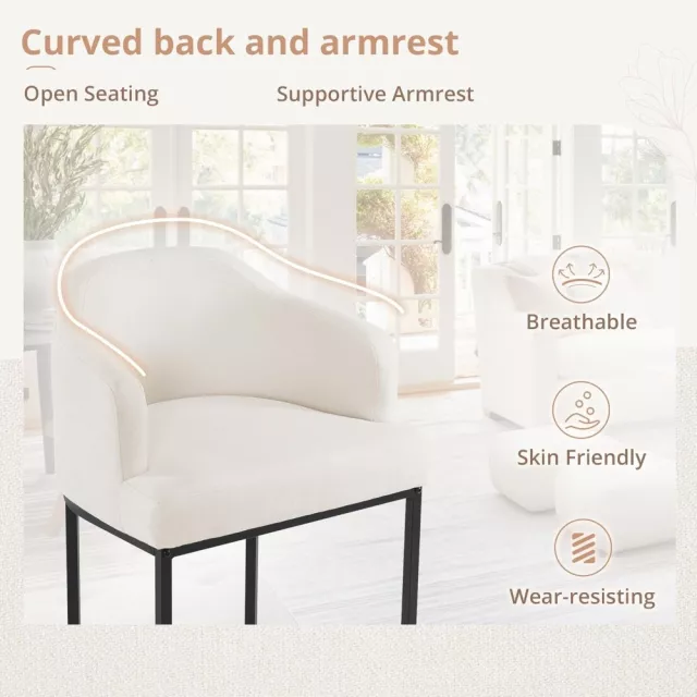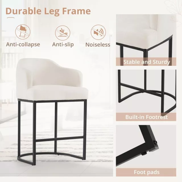 What makes these counter height bar stools special is their perfect combination of form and function. Not only do they serve as a beautiful accent to your space, but they also offer unmatched comfort for extended seating. The curved backrest and arms are thoughtfully designed to provide optimal back and arm support, while the generously padded seat ensures a relaxed sitting experience. The sturdy black metal frame offers lasting support, making these stools perfect for everyday use in your kitchen, dining room, or home bar.
