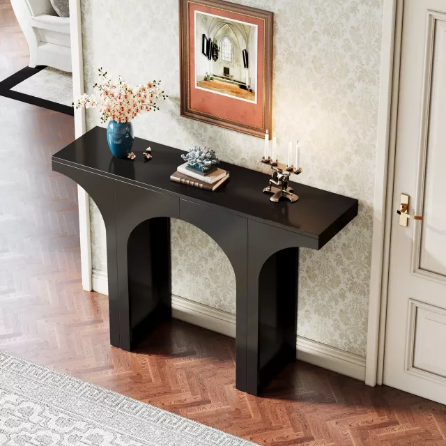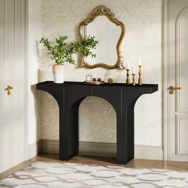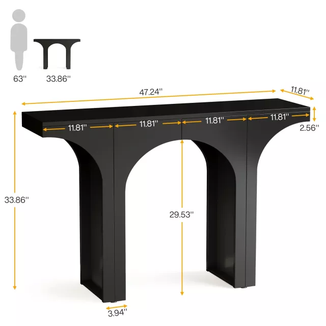 Modern 47″ Black Console Table with Arch Base – Minimalist Entryway Accent