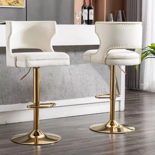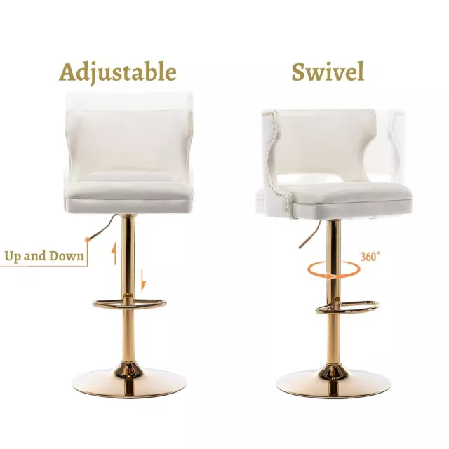 Each stool features a 360-degree swivel design and an adjustable seat height ranging from 26.4 inches to 35 inches, making them perfect for both counter and bar heights. Whether you’re hosting friends for cocktails or enjoying a casual breakfast, these stools deliver the perfect balance of style, comfort, and functionality.