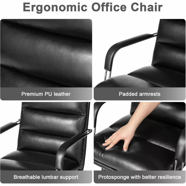 Modern Ergonomic Leather Office Chair with Reclining Backrest & Footrest