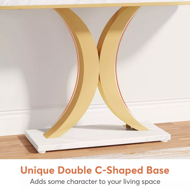 Whether you’re looking to add a touch of luxury to your entryway or searching for a statement piece for your hallway, this console table does it all. The blend of faux marble with gold detailing provides a refined yet modern look, while the thickened wood-grain tabletop ensures durability and a high-end finish. Its geometric base not only adds stability but also makes this piece a true work of art.