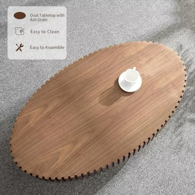 Transform your living room with this beautifully crafted 43.7″ oval coffee table. Designed with a minimalist yet sophisticated style, this table is the perfect blend of functionality and elegance. Its modern handcrafted design features smooth, clean lines and a stunning solid wood relief pattern, adding a touch of refinement to any home décor. Whether you’re relaxing with family, entertaining guests, or enjoying a quiet coffee break, this table will elevate your space with its timeless beauty and compact design.