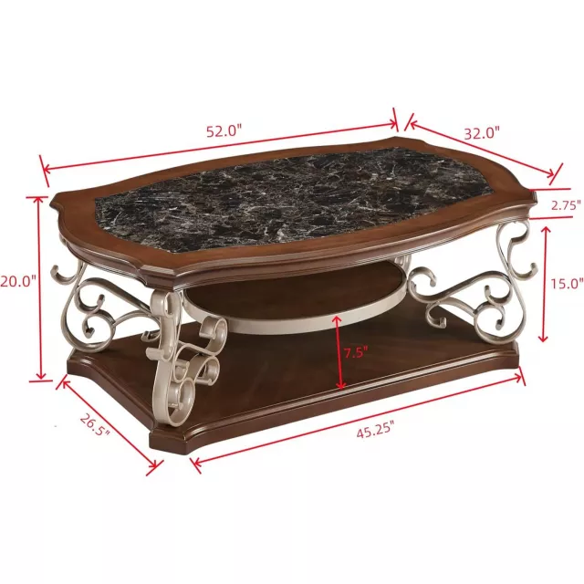 This table fits seamlessly into various spaces and serves more than one purpose. Use it as a classic coffee table in your living room, a sleek end table beside your couch, or even as a cocktail table for special occasions. Its mid-level shelf provides convenient storage for magazines, books, or decorative pieces, keeping your surface clutter-free and your space looking refined.