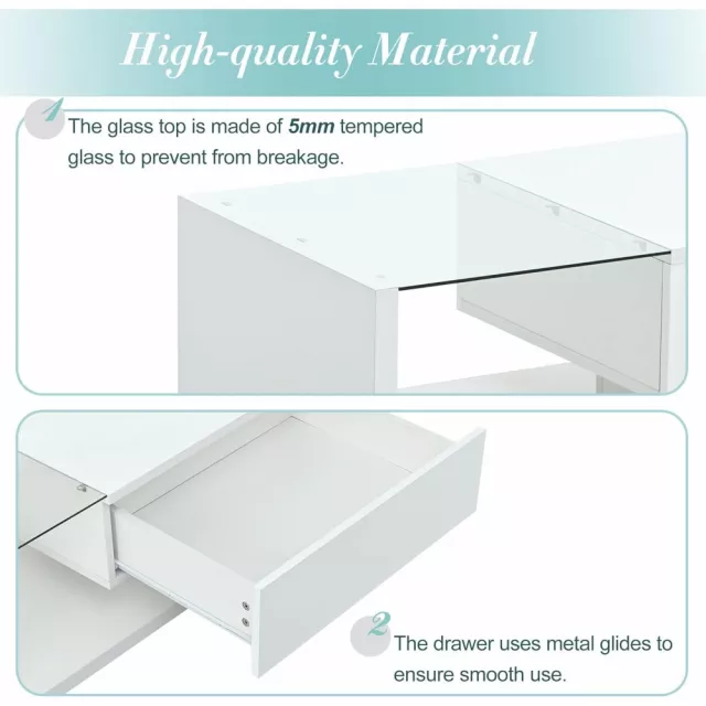 • Tempered Glass Top: Crafted from 5mm tempered glass, the top of this table provides durability while preventing breakage, offering both safety and elegance.