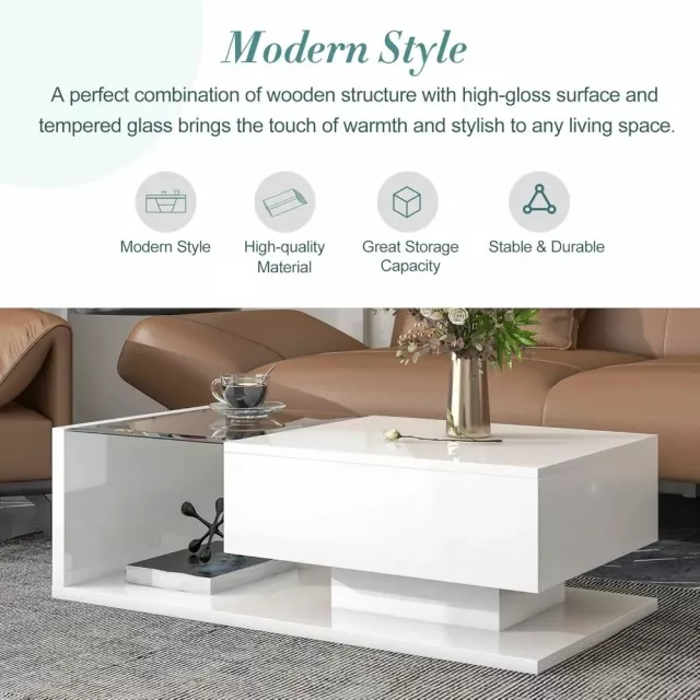Designed to be both functional and stylish, this coffee table is an ideal addition to any modern home. Whether you’re entertaining guests or simply relaxing after a long day, this table offers the perfect balance of design and practicality. The combination of wood and glass creates a warm, inviting atmosphere while offering durability that stands the test of time. Plus, the easy-to-maintain high-gloss surface makes it ideal for busy households.