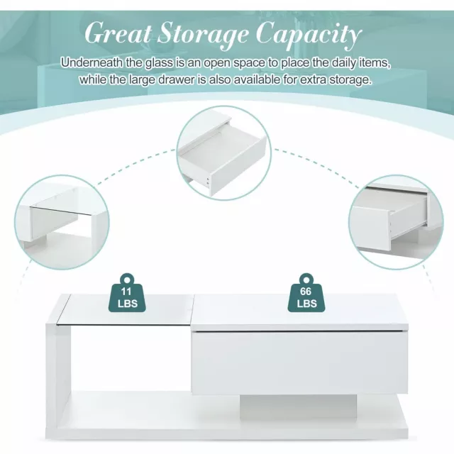• Sturdy Construction: Built with a strong wooden frame and reinforced glass, this coffee table is designed to last. The table top can hold up to 66 lbs, and the glass top has a weight capacity of 11 lbs, making it both reliable and durable.
