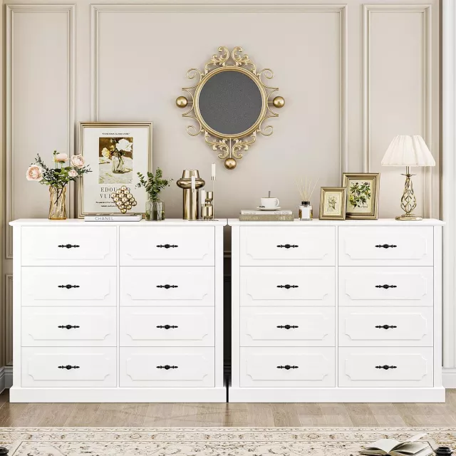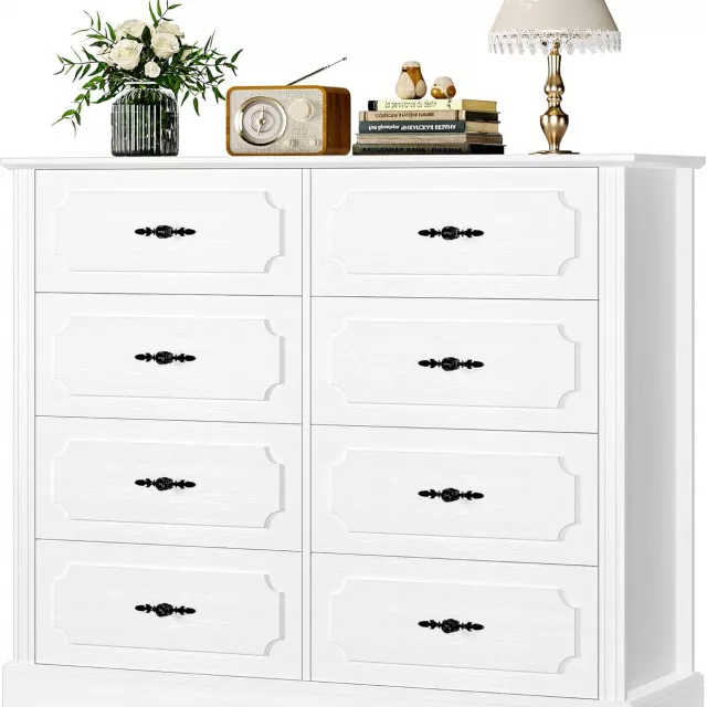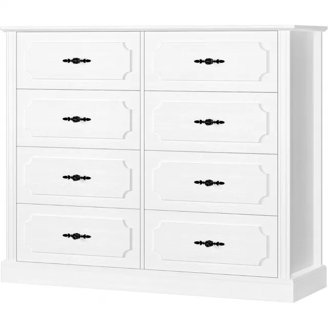 Constructed from high-quality engineered wood, this dresser boasts a sleek white finish and a charming convex stripe design that adds a touch of elegance. With 8 spacious drawers featuring metal pattern handles, it provides ample room to store clothing, books, toys, and other essentials. This piece is not only about functionality, but it’s also a statement of sophisticated, minimalist design.