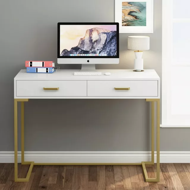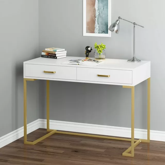 Modern White and Gold Vanity Desk with 2 Drawers