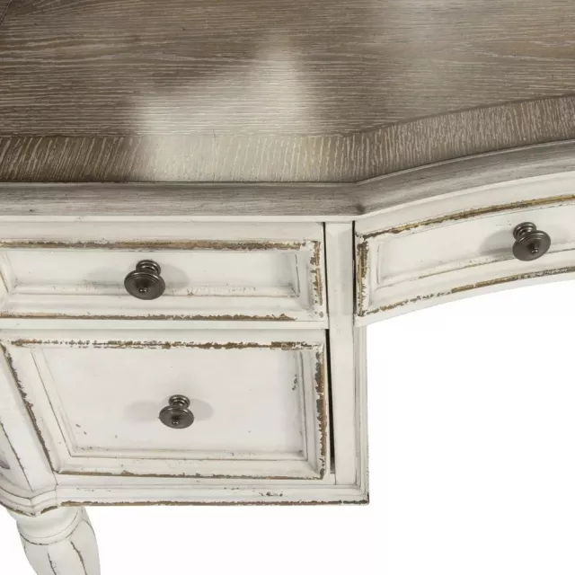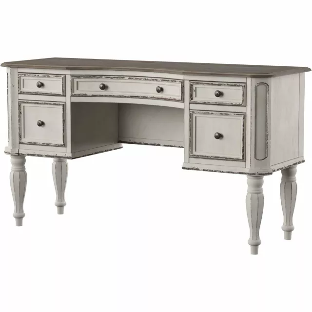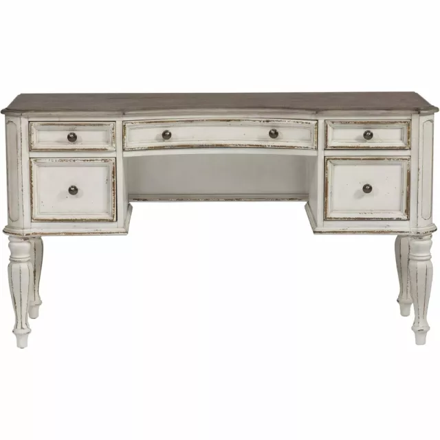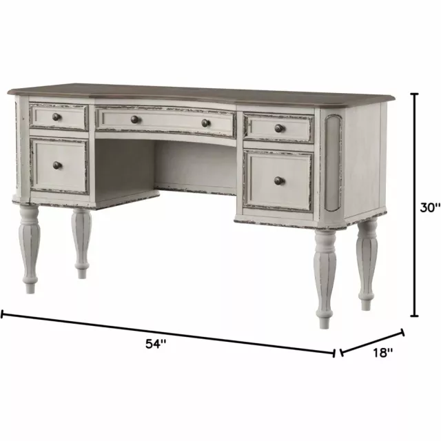 Transform your bedroom into a personal beauty haven with this stunning white vanity desk. Designed for both style and functionality, this elegant dressing table features a sleek glass top and five spacious drawers, perfect for organizing all your makeup, skincare, and accessories. The soft antique white finish and modern American country style add a graceful charm to any bedroom setting, making it the ideal centerpiece for your daily beauty rituals.