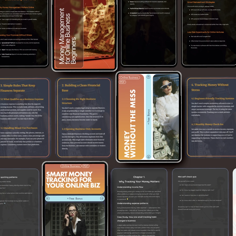 • Money Without the Mess – A practical guide that breaks down the essentials of money management for online businesses, making it easy to get started and stay on track.