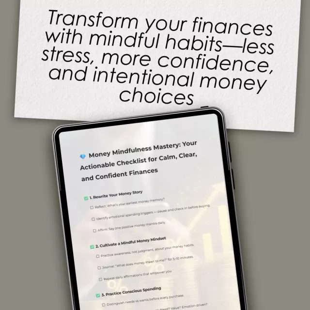 Stressed about finances? You’re not alone. Money Mindfulness Mastery is your go-to checklist for turning financial anxiety into clarity and confidence. This isn’t just another budgeting tool—it’s a mindful money practice that helps you align your spending with your values, break emotional spending cycles, and build a peaceful, purposeful financial future. No jargon, no guilt—just actionable steps to make money feel lighter and more intentional.