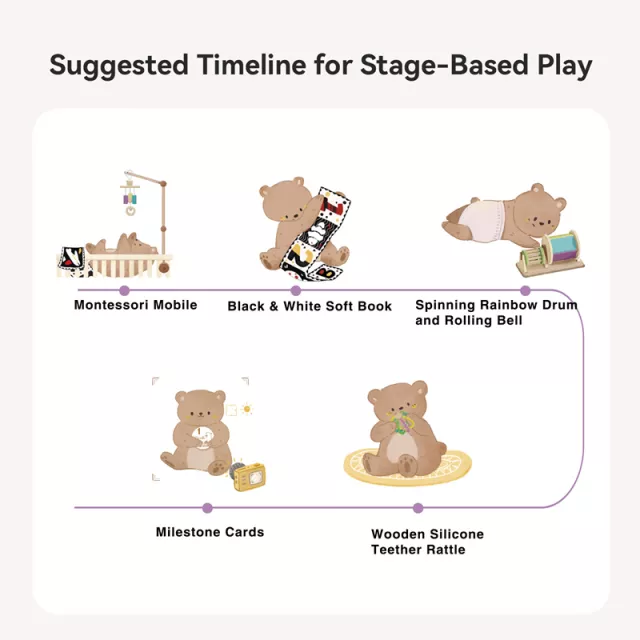 • Complete Montessori Set: Includes a spinning drum, ring bell, ball, mileage card, and early learning book — each piece crafted to stimulate different senses and skills.