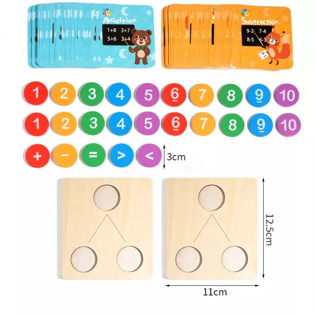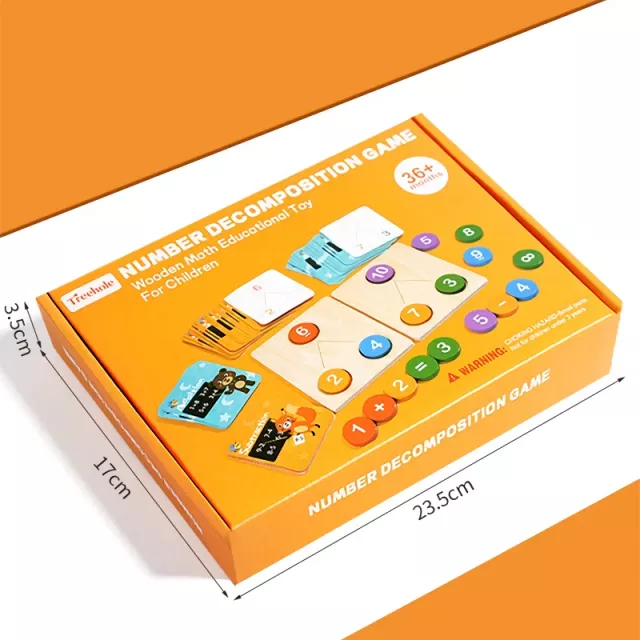 Introduce your child to the exciting world of numbers with this Montessori-inspired wooden math toy. Designed for children ages 3 and up, it combines hands-on play with early mathematical learning. Through fun and interactive activities, kids can explore number decomposition, addition, and subtraction, all while enhancing their logical thinking and problem-solving skills. The bright colors and smooth wooden pieces make learning both engaging and safe.