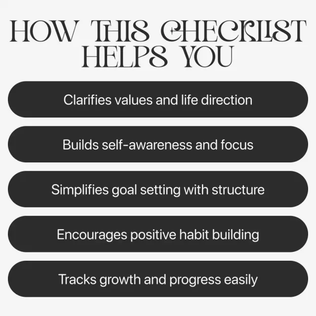 This monthly planner for self discovery checklist includes weekly self-reflection tasks, goal-setting exercises, exploration challenges, and monthly review prompts designed to guide you step by step through personal growth.