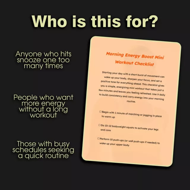 I was always struggling to wake up and get moving in the morning, but this mini workout checklist has been a lifesaver. It kickstarts my circulation and delivers oxygen straight to my brain for immediate mental and physical alertness. Plus, I love that it requires no equipment - perfect for someone like me who doesn't have much space at home!