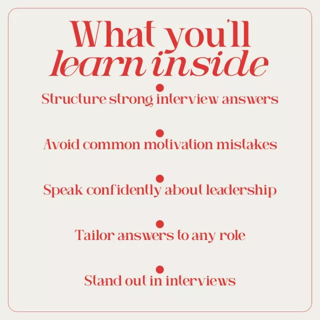 This guide is ideal for job seekers applying for leadership, management, HR, team lead, or senior individual contributor roles. It’s also perfect for career switchers, first-time managers, and professionals preparing for behavioral or competency-based interviews where motivation and leadership are key.