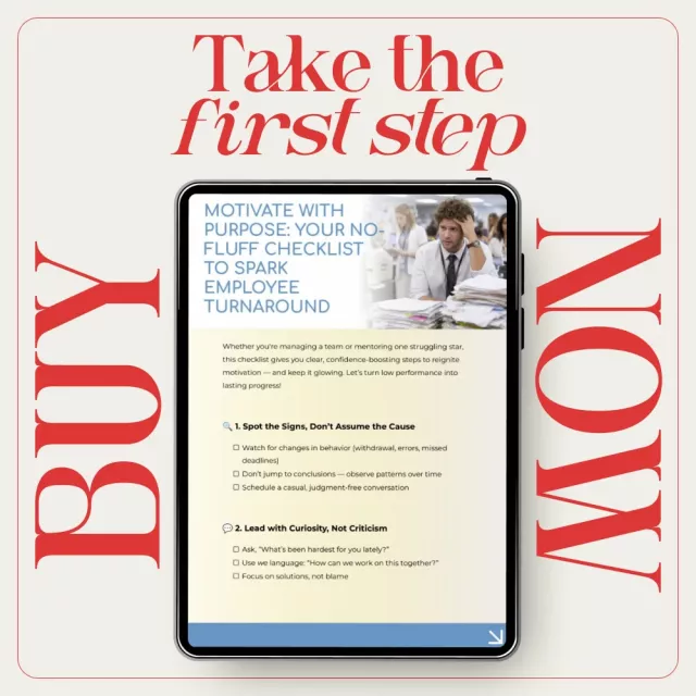 If you’re ready to stop guessing and start seeing real progress, this checklist is for you. Download Motivate with Purpose: Your No-Fluff Checklist to Spark Employee Turnaround today and turn low performance into lasting growth—one confident step at a time.