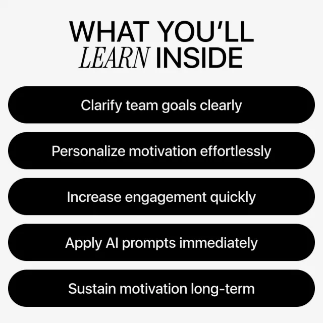 Don’t wait to transform your team’s motivation and performance. Download Motivating Teams With AI That Actually Works today and start applying AI-driven strategies that inspire, engage, and empower your team immediately.