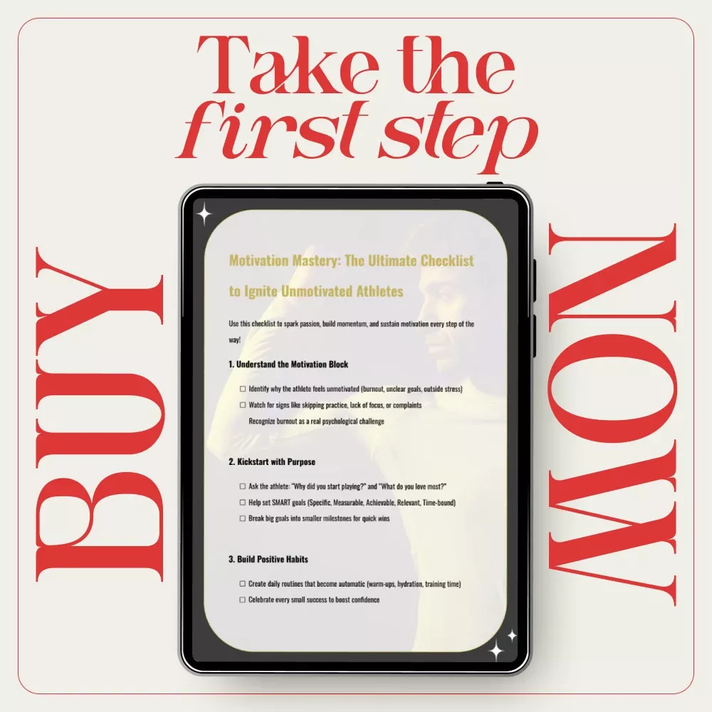 Motivation Mastery: The Ultimate Checklist to Ignite Unmotivated Athletes is a powerful, easy-to-use digital checklist designed to help you break through resistance, burnout, and self-doubt. Whether you’re a coach, parent, or trainer, this practical tool gives you clear steps for how to motivate unmotivated athletes without pressure, guilt, or confusion. Instead of guessing what went wrong, you’ll follow a proven framework that rebuilds purpose, creates momentum, and supports long-term motivation in a healthy, sustainable way.