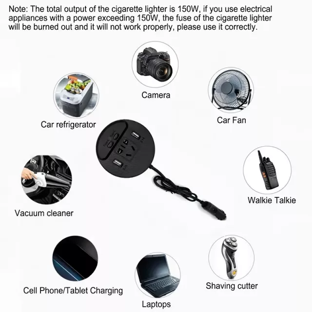 The sleek black design ensures it looks great in any vehicle, and the advanced heat management system keeps the power converter safe and efficient even when running multiple devices. Its 31.5-inch cord provides flexibility, allowing you to place the converter in a location that works best for you. With a maximum output of 150W, it has the power to handle your most demanding devices.