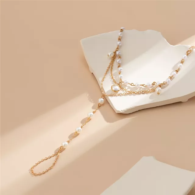 Elevate your accessory game with this stunning Multilayer Pearl Link Chain Hand Harness Bracelet. Designed for women who love trendy and delicate jewelry, this bracelet combines classic imitation pearls with stylish copper link chains for a modern yet elegant look. Perfect for bridal wear, weddings, or simply adding a touch of sophistication to any outfit, this hand harness bracelet wraps beautifully around your wrist and fingers, creating a unique statement piece.