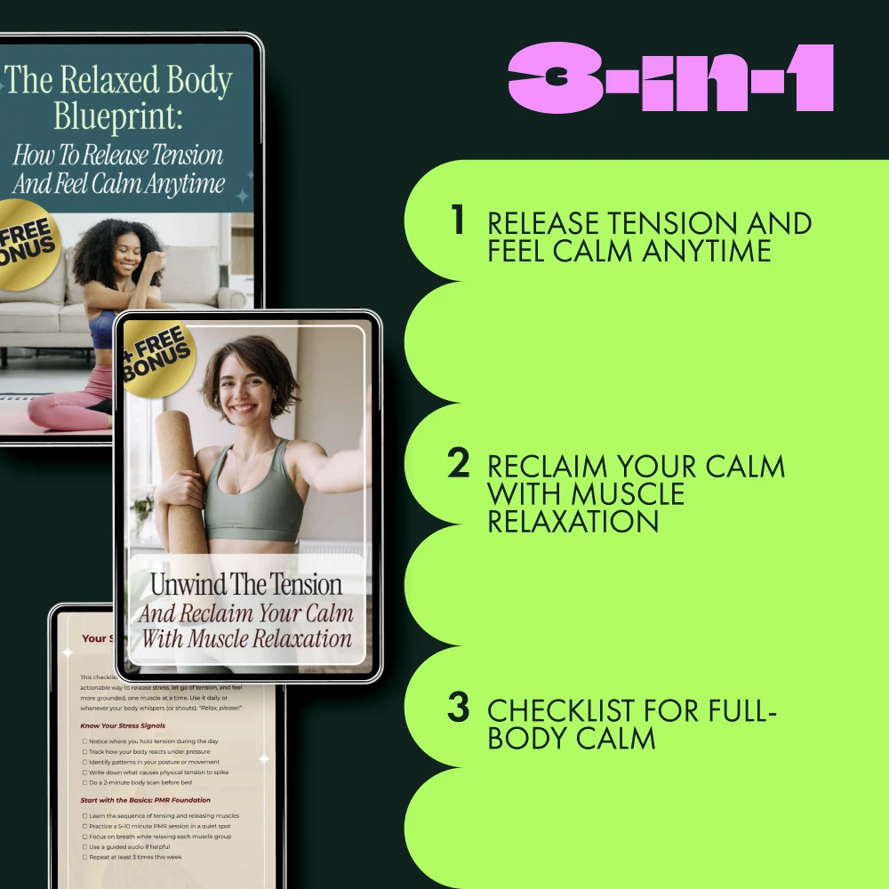 Don’t wait to start feeling more relaxed and at ease. Download the Muscle Relaxation Toolkit for Total Tension Relief today and take your first step toward a calmer, more peaceful life. Click below to purchase your 3-in-1 bundle and begin your journey to deep muscle relaxation now!