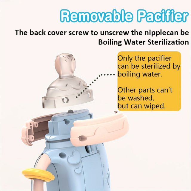 • Soft Pacifier Design: The bottle features a soft, soothing nipple that comforts babies during teething or fussy moments.