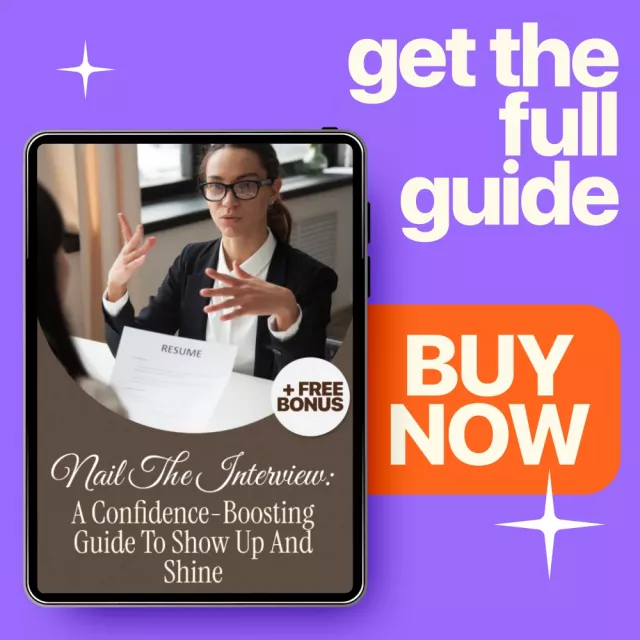 “Nail the Interview: A Confidence-Boosting Guide to Show Up and Shine” is not your average interview prep resource. What sets this guide apart is its focus on how to feel confident for an interview from the inside out. It’s not just about knowing the right answers; it’s about showing up with the right mindset and presenting yourself as the confident, capable professional you truly are.