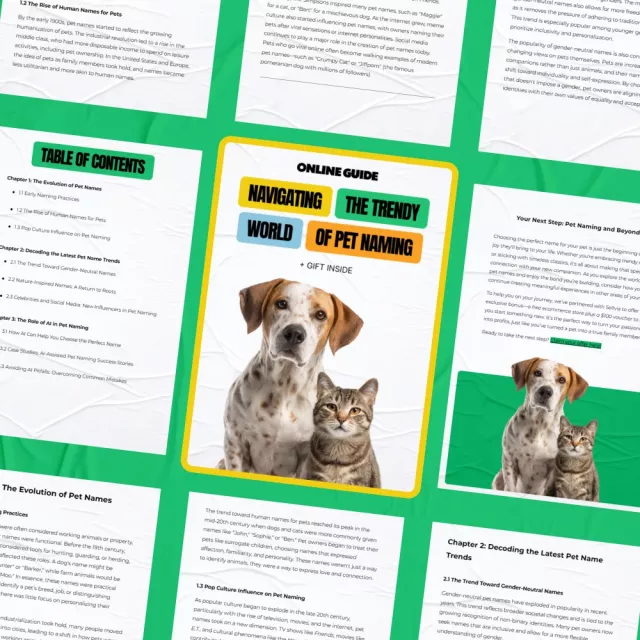 • Chapter 2: Decoding the Latest Pet Name Trends – Gender-neutral names, nature-inspired names, and celebrity-driven naming shifts